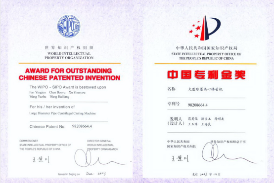 有效专利1800+ | 发明专利380+ | PCT14 | 离心球墨铸铁管关键技术及装备荣获中国专利金奖 |